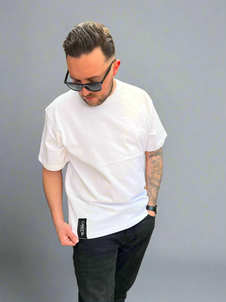 Our new Cartel relaxed fit T-shirt. Made from cotton, features a classic fit and minimalist hem tag with logo detail for a refined, timeless look. Perfect for effortless everyday style.